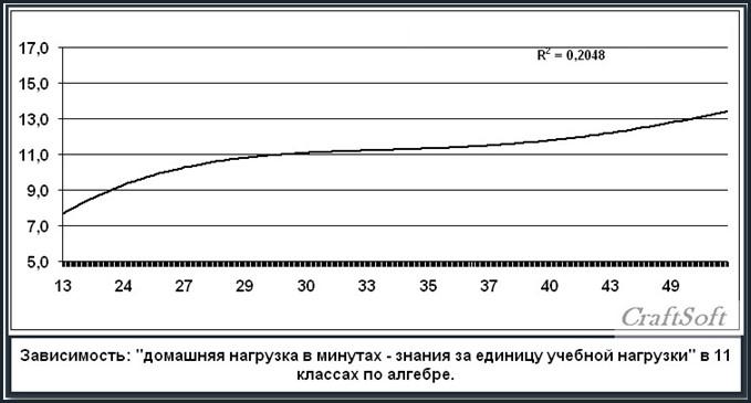 Влияние домашней нагрузки на знания учащихся. На примере преподавания алгебры в 11-ых классах московских школ. Значения представлены в абсолютной (20-балльной шкале).